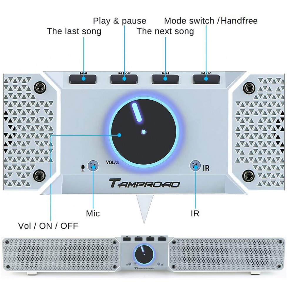 Bluetooth Version: 5.0 Driver Output : 2 x 10w, 2 x Diaphragm, THD 1%