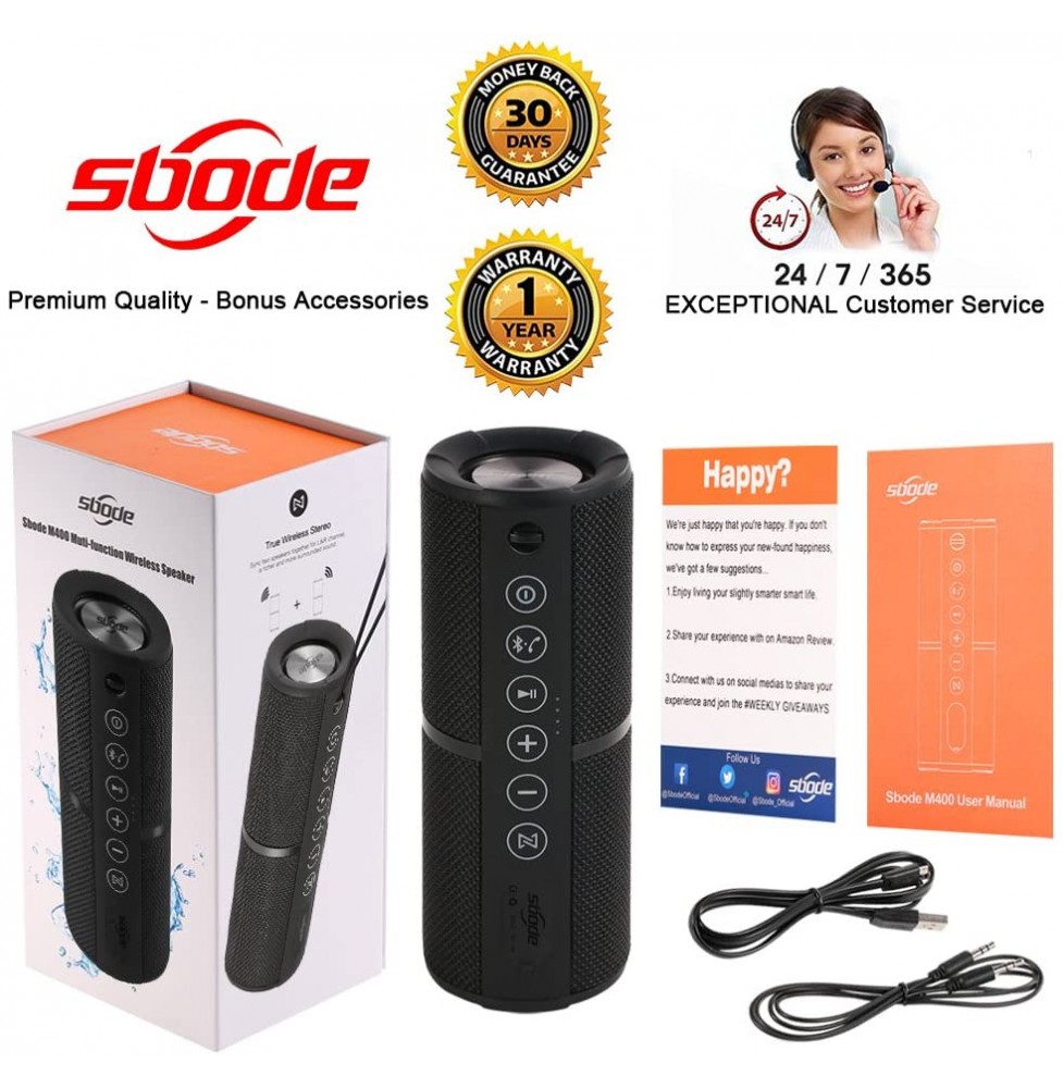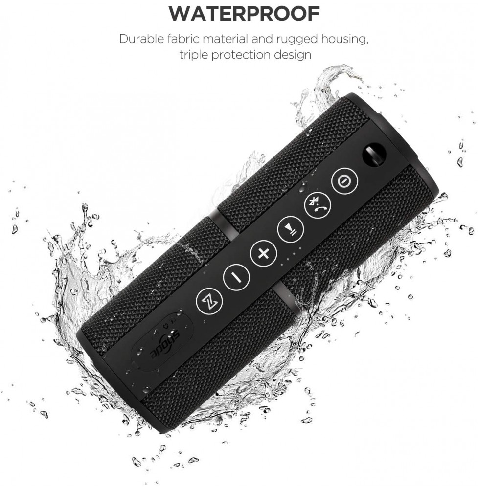 Sbode M400 Speakers providing 8 hours playing time and only takes 3 hours to be fully recharged. Its rubberized housing and IPX6 rating make it a great option for trips to the beach, singing in the shower, or basically